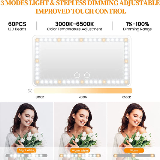Car Sun Visor Vanity Mirror with Lights, Rechargeable Car Makeup Mirror Accessories, Birthday Gifts for Women Girl, 3 Light Modes, Dimmable Touch Led Screen, Universal for Car Truck